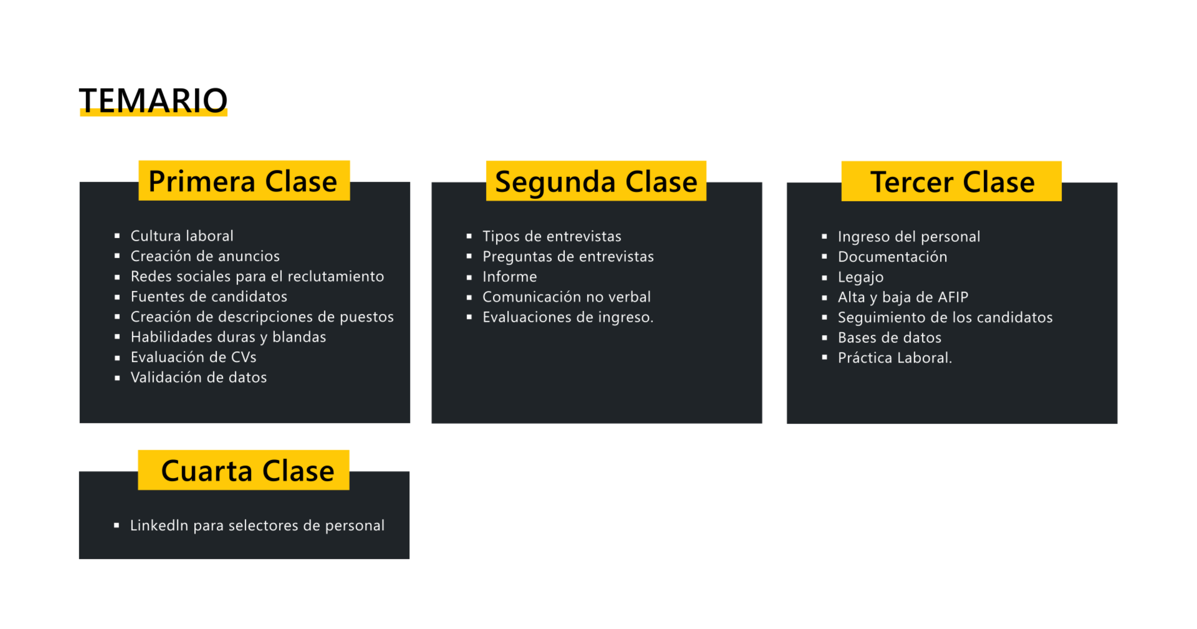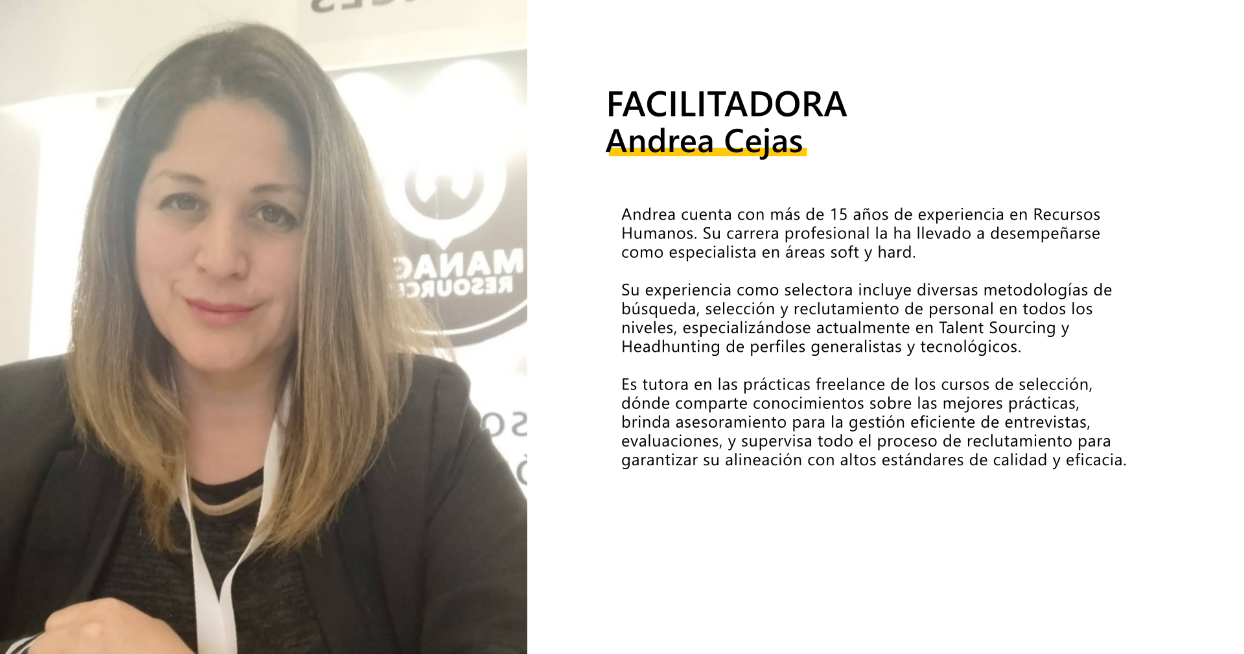 El curso está impartido por profesionales con amplia experiencia en selección de personal, quienes compartirán su conocimiento a través de un enfoque práctico con ejemplos reales. Esto te permitirá adquirir habilidades concretas para destacar en el área de recursos humanos.