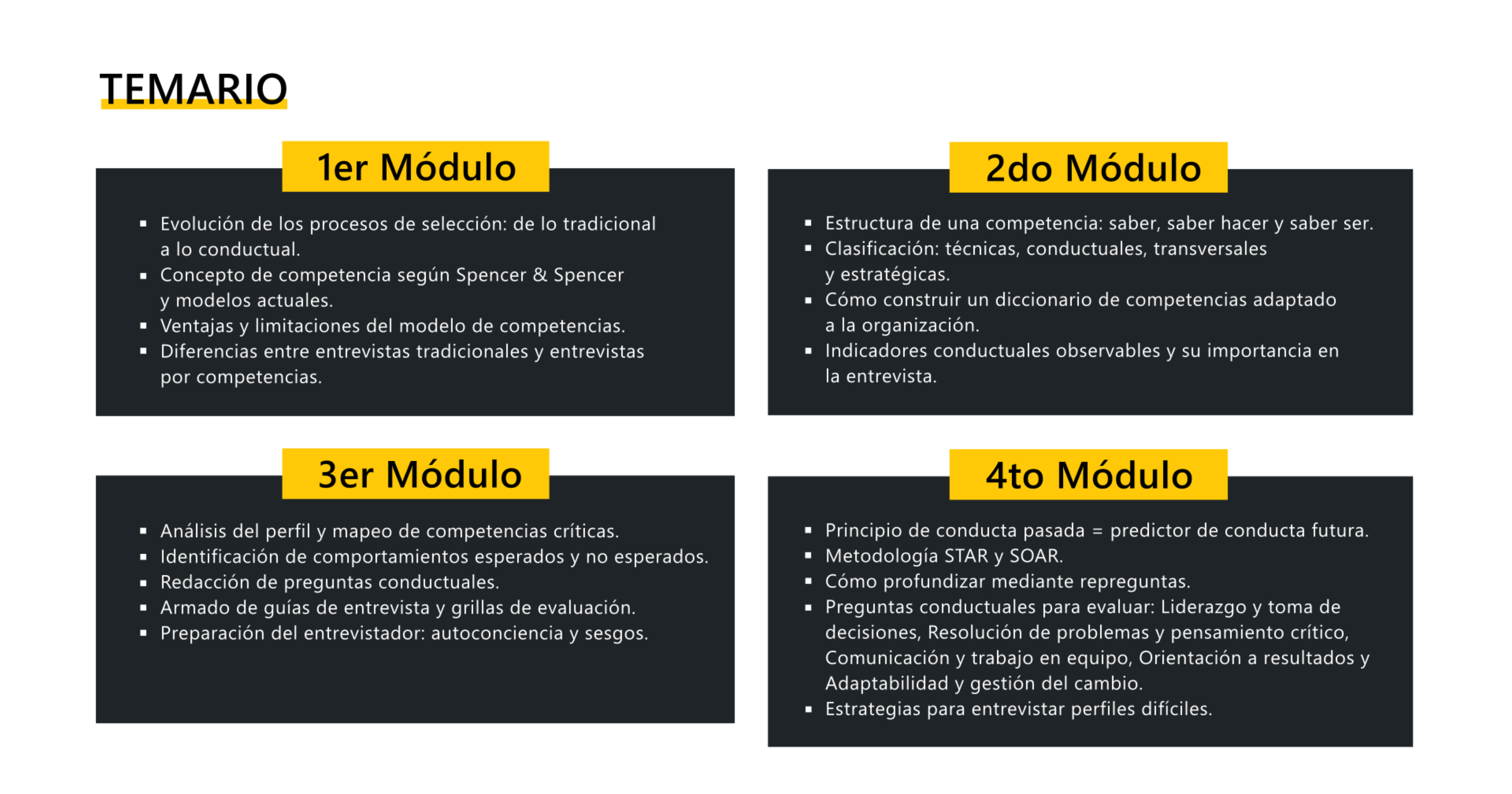 Esta capacitación es una invitación a profundizar en el modelo de entrevistas por competencias, entendiendo cómo evolucionó la selección de personal: de un enfoque tradicional, más intuitivo, hacia uno conductual, basado en la observación objetiva y en evidencia concreta.
