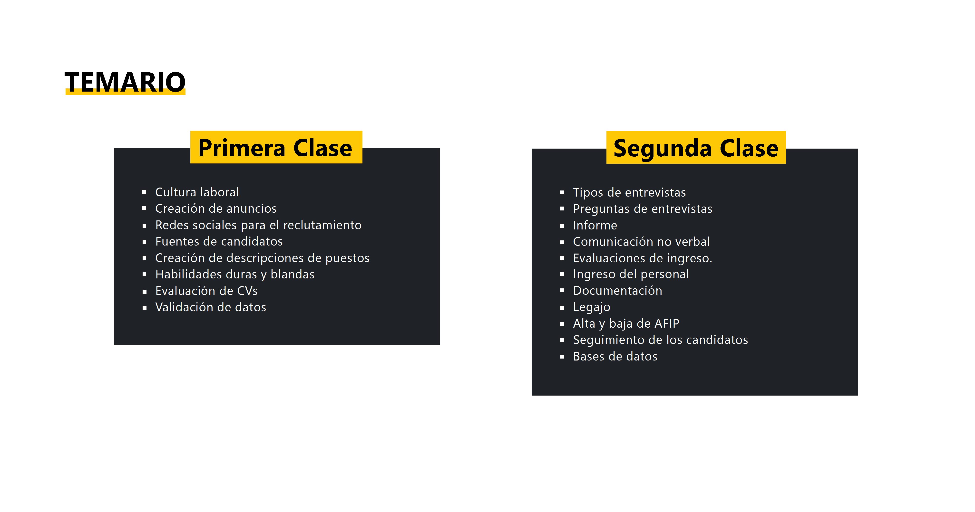 El curso es dictado por profesionales con amplia experiencia en selección de personal, que comparten conocimientos y casos reales a través de un enfoque práctico y aplicable.